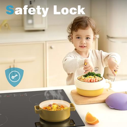 🔒【Child Safety Lock】 “Child Safety Lock” can effectively prevent children from touching the induction cooker randomly and causing accidents. When you touch the “Child Safety Lock” key, all other key will not be available, except the OFF control key. This thoughtful design of the induction hobs allows parents to cook delicious food at ease.