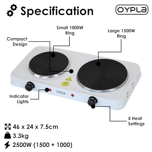 Oypla 2.5Kw Electric Portable Kitchen Double Hot Plate