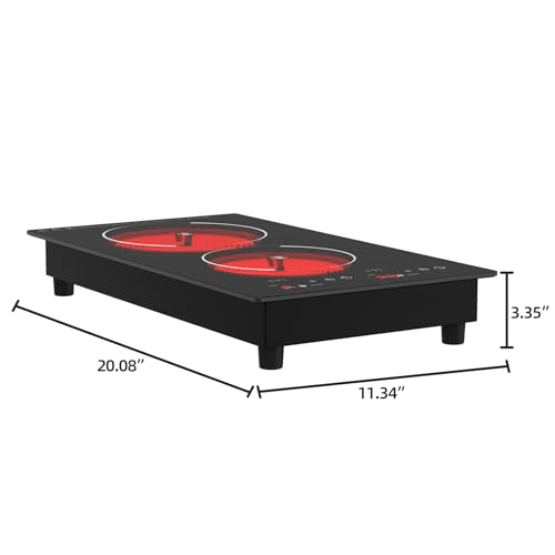 Dual Powerful Cooking Zone:VBGK 2 ring electric hob is equipped with two independent heating zones, allowing you to set each heating zone separately using the LED display. Independent power 1800W+1200W, Electric stove top burner which can quickly cook 2 dishes of delicious dishes at the same time, saving a lot of time.