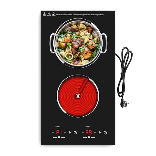 9 Power Levels & 9 Temperature Settings:VBGK double electric hob with sensor touch control has 9 power levels to meet your different choice to cook a variety of different foods, perfect for braise, fry, simmer, steaming, boil, stir-frying, roast. The Electric burner has 20 temperature settings, ranging from 80°C to 270°C,220-240V (Plug included)Suitable for all UK households