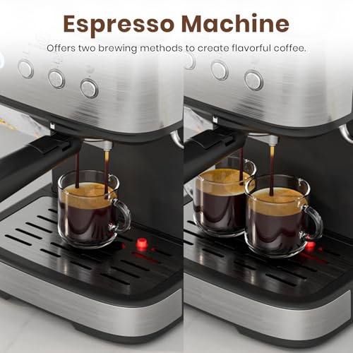 Durable and Safe – Built with stainless steel housing, die-cast alloy boiler, and a dual spout system for serving two cups at once. This premium small coffee machine also features overheating and overpressure protection for long-lasting performance.