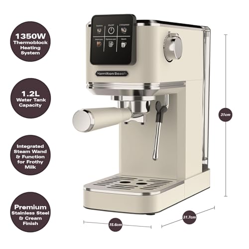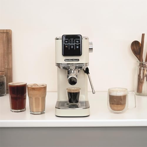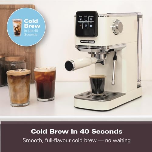 Hamilton Beach Espresso Coffee Machine, BaristaPro 5-in-1, Compact Stainless Steel, LCD Touch Screen Control, Steam Milk Frother, 20-Bar Pressure & Fast Heat, Hot & Iced Coffee, Cream – HBC5210C