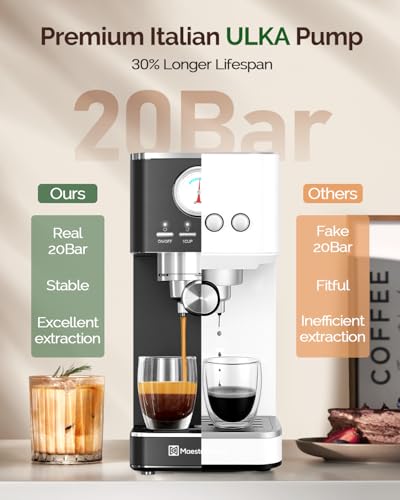 Maestri House Espresso Machine, 20 Bar ULKA Pump, Compact Espresso Maker Built-in Flow Meter Steam Milk Frother, Stainless Steel Coffee Machine for Cappuccino, Latte (Black)