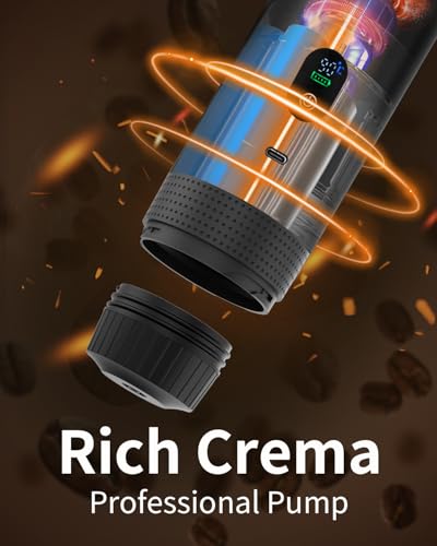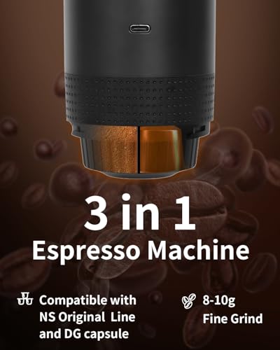 Portable Electric Espresso Machine, Travel Coffee Maker Brewer Compatible with Ground Coffee & NS Capsules (Black with LCD Screen)