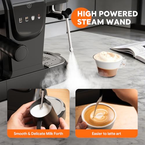 🥛 Powerful Steam Wand for Silky Milk Foam: Create velvety microfoam effortlessly with the powerful steam wand, perfect for crafting lattes, cappuccinos, flat whites and more. The wand is letting you unleash your creativity and enjoy professional milk-based beverages at home.