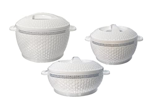 Rishabh Insulated Hot pot Casserole Hot & Cool Food Serving Dish with Lid, Double Wall. Stainless Steel Inside Set of 3 (Size 1500,2000, & 2500ml) (White)