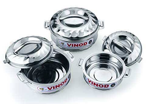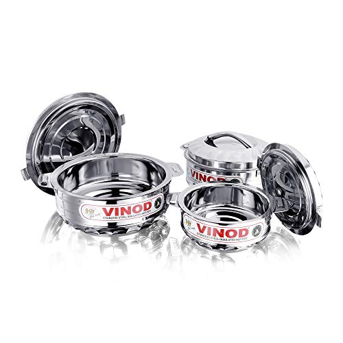 Vinod 3-Piece Insulated Casserole Food Warmer/Cooler Hot Pot Gift Set, 1000mL+1500mL+2500mL, Stainless Steel