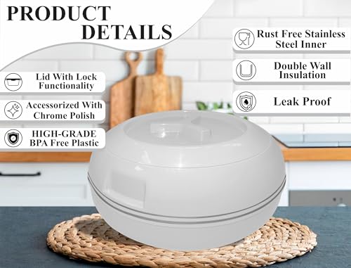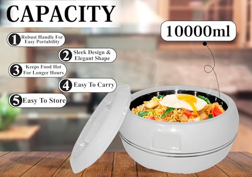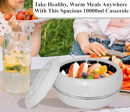 White 10000ml Large Insulated Hot Pot Casserole Hot & Cool Food Serving Dish with Lid Insulated Casserole – Double Wall, Stainless Steel, BPA-Free, with Locking Lid Best Gift Set for Moms