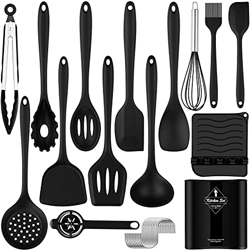 Kitchen Utensils Set – 25pcs Silicone Kitchen Utensils Set, for Nonstick Cookware, Kitchen Tools Spatula Spoons Turner Brush Whisk, Heat Resistant and Easy Clean, Black