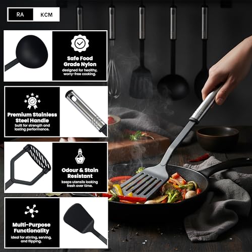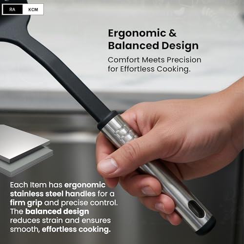 𝐄𝐫𝐠𝐨𝐧𝐨𝐦𝐢𝐜 & 𝐍𝐨𝐧-𝐒𝐥𝐢𝐩 𝐃𝐞𝐬𝐢𝐠𝐧 RAKCM Kitchen Utensils Designed for comfort and control, each handle offers a non-slip grip. Whether you’re stirring, flipping, mashing, or cutting, these utensils make kitchen tasks easier and safer for everyday home cooks.