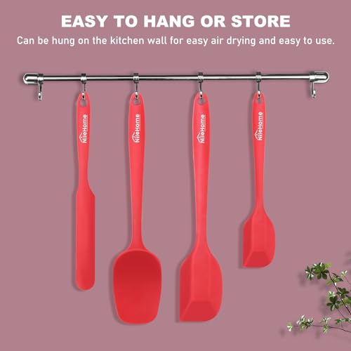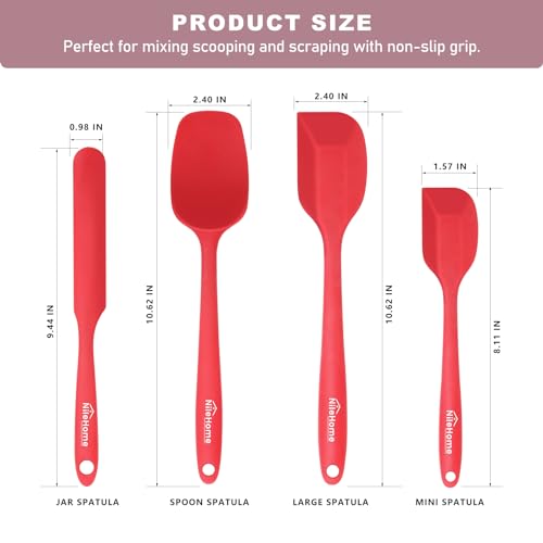 NileHome Silicone Spatula Set, High Heat-Resistant Premium BPA-Free One Piece Seamless Design, Non-Stick Rubber with 18/8 Stainless Steel Core, Cooking/Baking Utensil Set of 4, Red