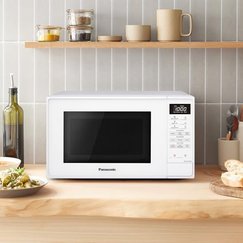 Panasonic NN-E27JWMBBQ 20L Compact Microwave, 800W, Touch Control, 5 Power Levels, 9 Auto Programmes, Defrost, Glass Turntable, White