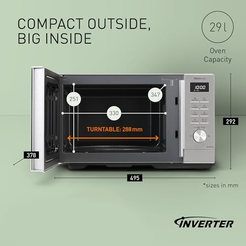 INVERTER TECHNOLOGY: Enjoy gentle, even cooking and reheating thanks to this compact microwave’s Inverter Technology, preventing overcooking and preserving nutrients