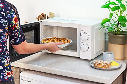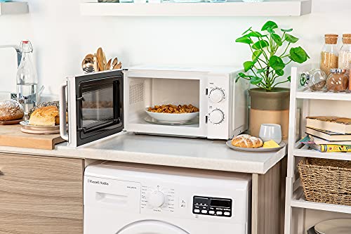 Russell Hobbs 17L Small Microwave White Manual Textures 700W with 5 Power Levels & 30 min Timer, Defrost Function & Easy Clean, RHM1725