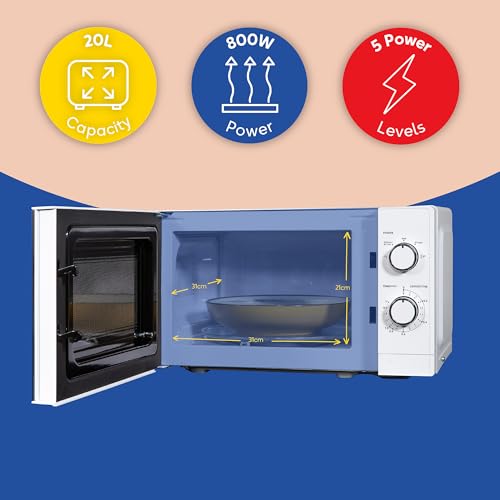 Russell Hobbs 20 Litre 800W White Solo Manual Microwave, 5 Power Levels, Integrated Timer and Defrost Function, Easy Clean RHM2027