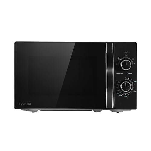 TOSHIBA Black Mirror Front Microwave 20 Liter 700W Manual Control, Compact with 5 Power Levels, Automatic Defrost, Perfect for 9” Pizza, Clock and Timer, Easy Clean, MW2-MM20PF(MB)