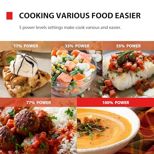 Cooking Various Food Easier: This Toshiba 700w microwave offers 5 power settings make you cook easier, allowing you to cook popcorn, potatoes, frozen vegetables, hot beverages according to your unique needs