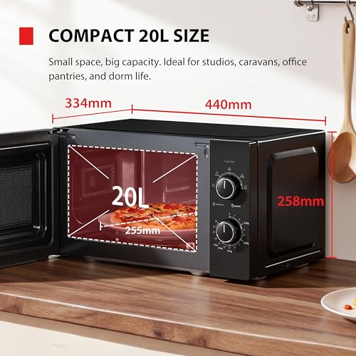 Made For UK Countertops: This Toshiba 20L microwave offers good capacity perfect for standard plates, contained within a compact size pakage 49.6×39.6×29.7cm, product 44.0×35.2×25.9cm,You can easily make 9 inches pizza, the glass turntable is 255mm, removable for cleaning and dishwasher safe