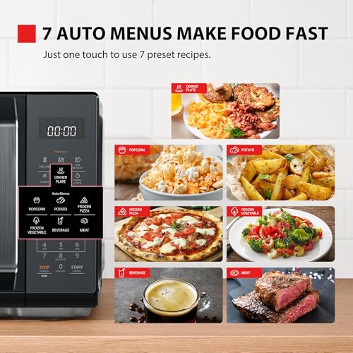 Cooking More Convenient and Faster: This Toshiba digital microwave provides 7 Preset Recipes, just one touch, you can quickly enjoy delicious foods by using the Pre-Programmed Recipes