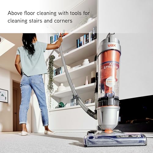 Vax Air Stretch Upright Vacuum Cleaner; Over 17m Reach; High performance, Multi-cyclonic, with No Loss of Suction; Lightweight – U85-AS-Be, Silver and Orange, 820W