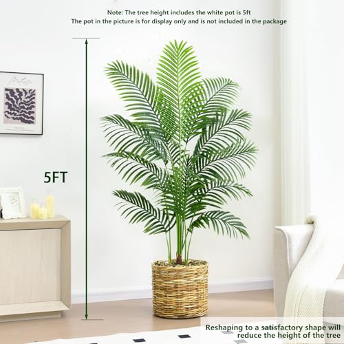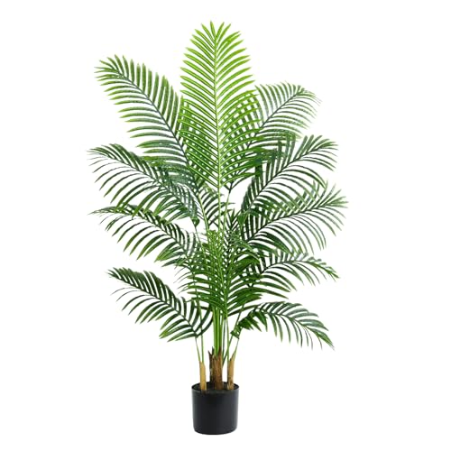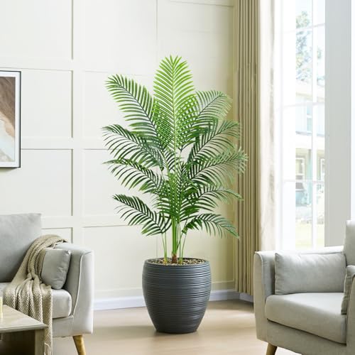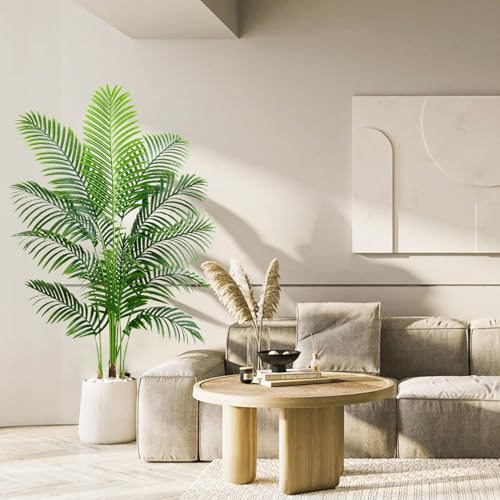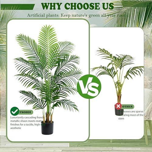 Nearly Reality Tall Fake Palm Plants:this realistic artificial palm tree is made of durable polyester material, with a black pot base covered in sawdust, and hand planted bark that is more realistic and natural than artificial plastic bark