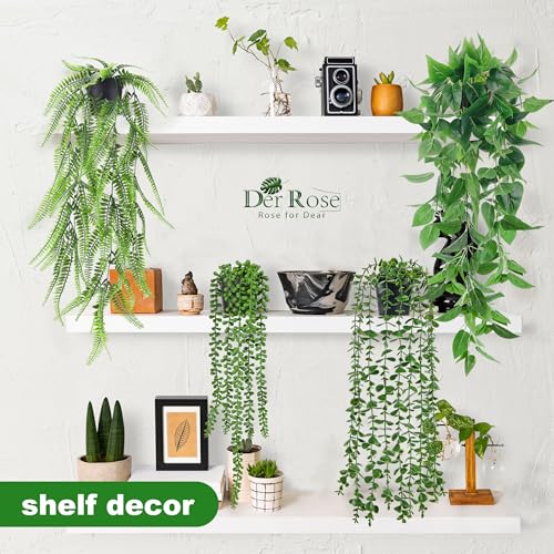Der Rose 4 Pack Fake Plants Artificial Plants Indoor Hanging with Pots Artificial Ivy Vine Faux Eucalyptus Hanging Plants, Boston Fern, String of Pearls for Home Room Wall Shelf Indoor Outdoor Decor
