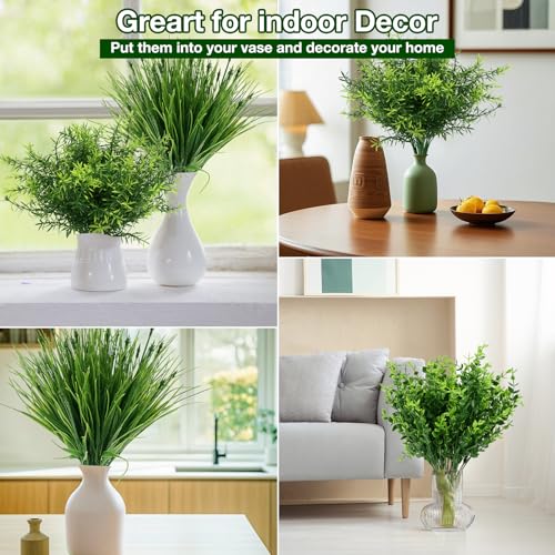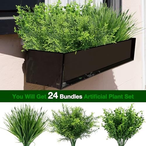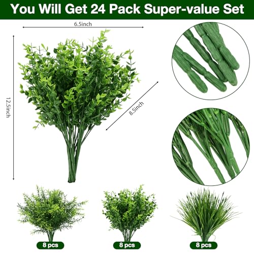 24 Bundles Artificial Plants Grass Indoor Outdoor UV Plastic Fake Bushes Plants Shrubs Greenery Flowers Arrangement