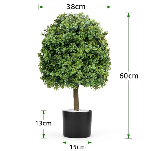 Set of two Boxwood trees:Each Artificial Boxwood Topiary Trees are about 60 cm high and 38 cm wide. Flower pot dimensions: 13 cm high and 15 cm wide.