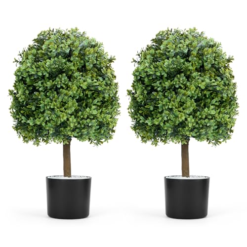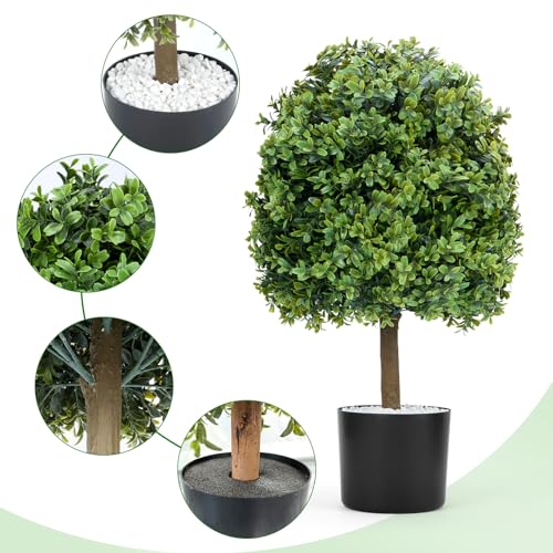 Set of 2 Artificial Boxwood Ball Trees 60cm Tall,Decoration Fake Plant Plastic Bonsai with Built-in Cement Pot,UV Resistant Faux Boxwood Topiary Plant for Home Indoor Outdoor Decor