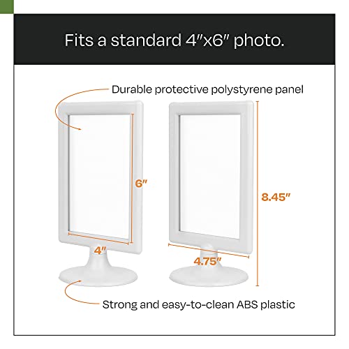 ALBEN Double Sided Standing Picture Frames – (White, 10 count) 4×6 Inch Pedestal Photo Frame with Inserts and Base – 2 Sided Frame for Vertical Display