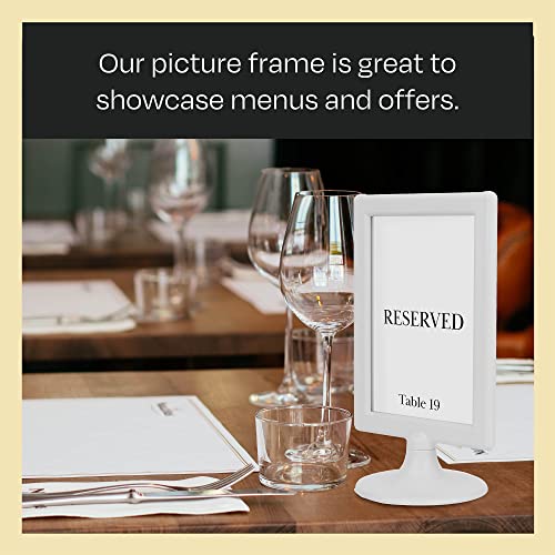 GREAT FOR BUSINESS ESTABLISHMENTS – These tabletop pedestal frames will elegantly showcase menus, offers, wedding table numbers, ads, and reservations. Engage more with consumers with these eye-catching double sided frame display.