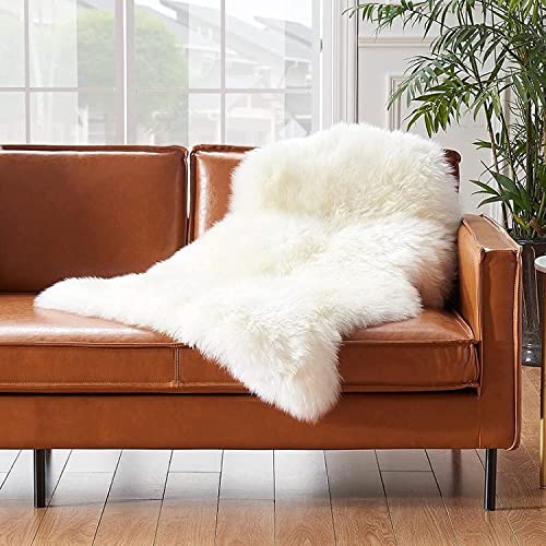 Faux Fur Sheepskin Style Rug,Faux Fleece Fluffy Area Rugs Seat Pad Anti-Skid Yoga Carpet for Living Room Bedroom Sofa Floor (White, 60 x 90cm)