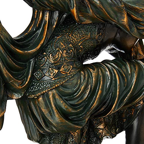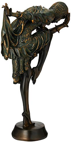 Created by the master of the classical manifestation of Art Deco style in decorative sculpture, this replica dancer statue by Romanian-born Chiparus is meticulously hand-painted to mirror the bronze verdigris original. Dancers of the Russian Ballet, French theatre, and early motion pictures were among Chiparus’s notable subjects and were typified by a long, slender, stylized Art Deco appearance. The “Snake Dancer” embodies the winning victory over any foe. Created in quality designer resin to capture the subtle nuances that sell for thousands at auction, this Art Deco collectible is set atop museum mount.