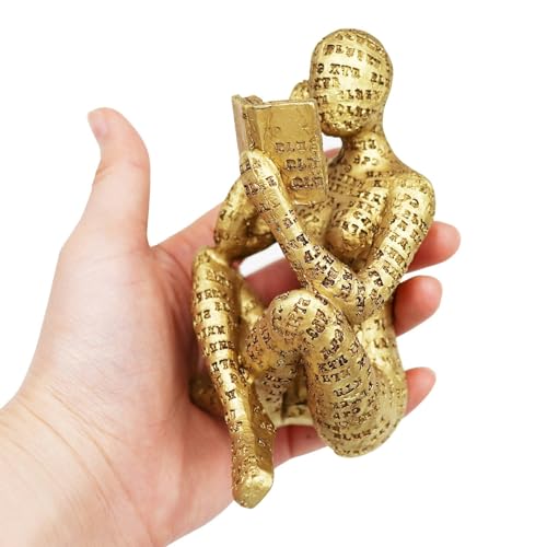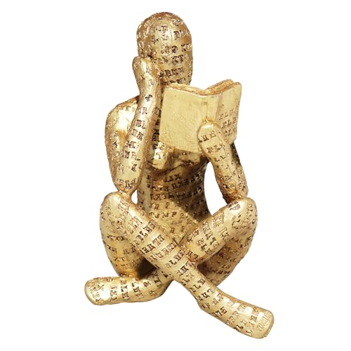 Dnoifne Gold Reading Women Statue, Thinker Sculptures, Abstract Art Ornament, Modern Aesthetic Figurine Decoration, Suitable for Home Living Room Bedroom Office Shelf Table Desk Bookshelf Decor
