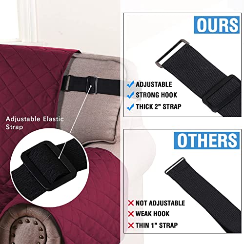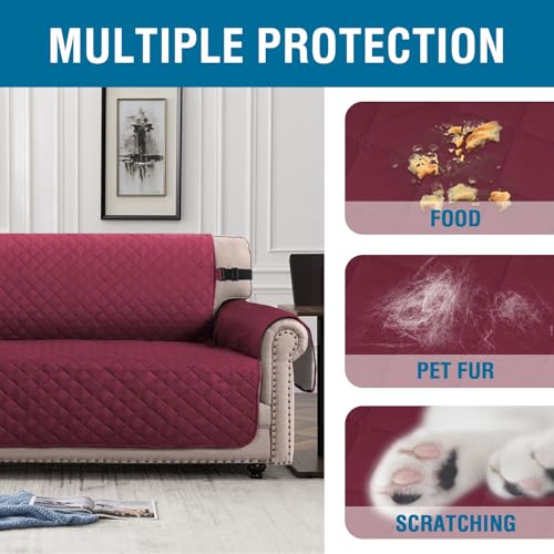 H.Versailtex Sofa Cover 2 Seater, Water Resistant Sofa Protectors From Pets, Washable Sofa couch covers with Elastic Strap, Quilted Sofa Slipcover for Kids/Dogs (Burgundy/Tan)