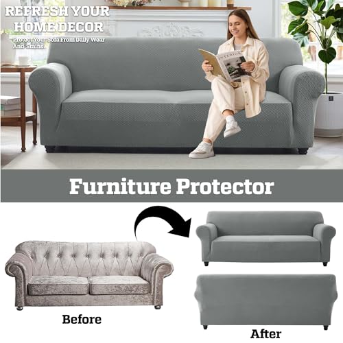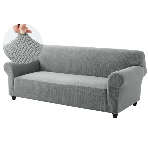 Hafaa High Stretch Sofa Cover 3 Seater Jacquard Spandex Non Slip Grey Sofa Slipcovers Elastic Fit Couch Covers for Living Room Soft Washable Furniture Protector for Pets/Kids/Dogs