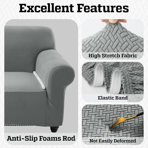 HIGH STRETCH MATERIAL – Made from a premium polyester-Spandex blend with a smooth, cozy texture that stretches easily and offers 360° coverage to your furniture for a better look with wrinkle-free. And it will not deformation because of the high stretchy recovery ability. Cool in summer, warm in winter—perfect comfort all year round. High quality fabric, soft, thick, comfortable, and breathable.