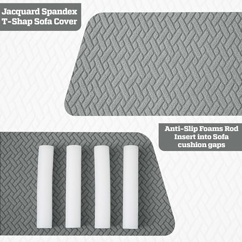FULL PROTECTION SPANDEX FITS – This T-shaped Sofa Protector with four-way stretching capabilities comes with non-slip foam rods insert into the gap of sofa seat cushion, elastic bottom ensures a secure fit— no slipping, bunching, or shifting. Easy to install on most 1, 2, 3, and 4-seat sofas. Installation Instruction provided in the images and also with the product.