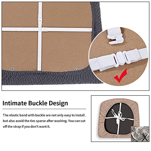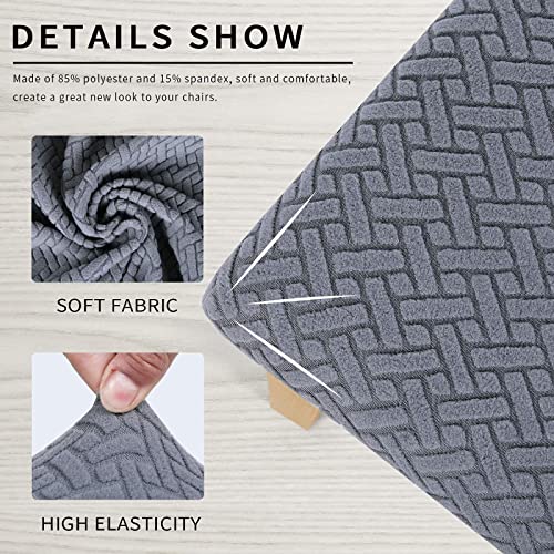 Homaxy Dining Chair Seat Covers Set of 4, Stretch Jacquard Dining Chair Slipcovers Seat Protector with Buckle for Dining Room Kitchen, Grey