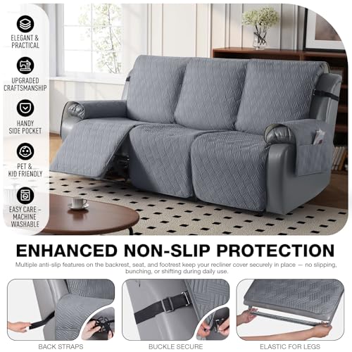 🍀Machine Washable: KinCam recliner sofa covers 3 seater simple to care, just toss into the washing machine for hassle-free cleaning and long-lasting freshness.