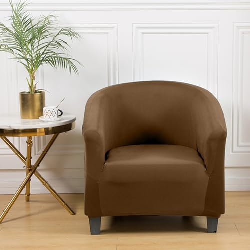 Soft Velvet Tub Chair Cover, 2 IN 1 Design Removable Stretch Club Chair Cover Bucket Chair Covers Armchair Slipcovers Chairs Armchair Seat Covers,Furniture Protectors for Dining Living Room(Brown)