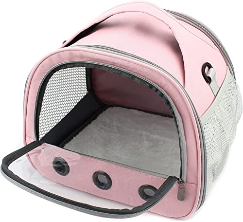 Small Animal Carrier Bag – Guinea Pig Carrier Large Size,Portable Bag with Strap for Parrots Ferret Hedgehog Squirrel Chinchilla Sugar Glider, Breathable & Perspective (Pink)