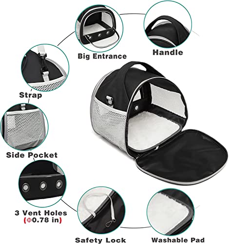 【Thicken Handle and Removable Mat】The handle of the guinea pig carrier is thicken and delicate, easy to hold. And the carrier of small animal brings a soft removable mat, makes your small pets feel cozy when them in it play or rest.