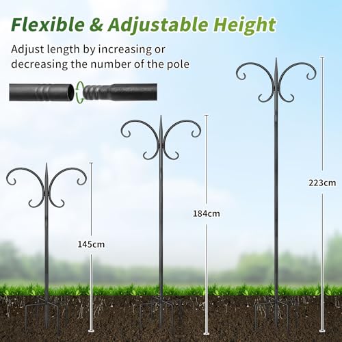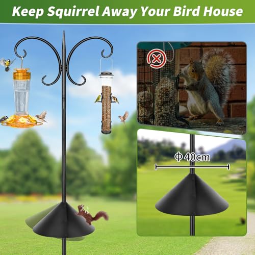Bird Feeders Hanging Station, 223cm Free Standing Bird Feeding Station Heavy Duty Metal Bird Feeder Pole Stand with Squirrel Baffle, Shepherds Crook Hooks for Garden Lights Lanterns Plant Basket