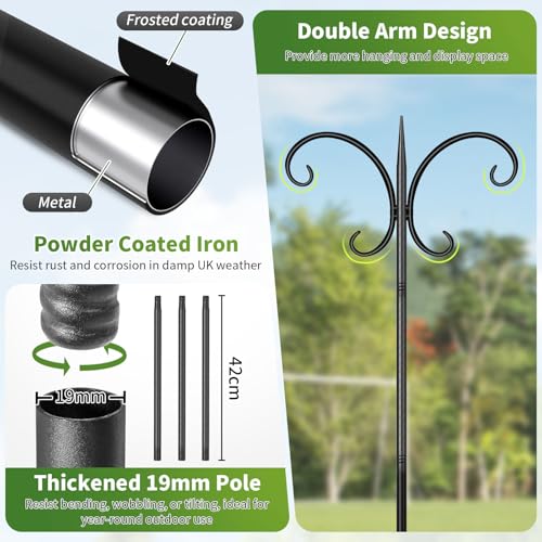 Durable Construction — Crafted from powder-coated iron, this bird feeder hanging station resists rust and corrosion, withstands year-round British weather, ensuring long-lasting outdoor performance. The classic matte black finish ensures bird feeder pole blends effortlessly into both traditional and modern garden landscapes
