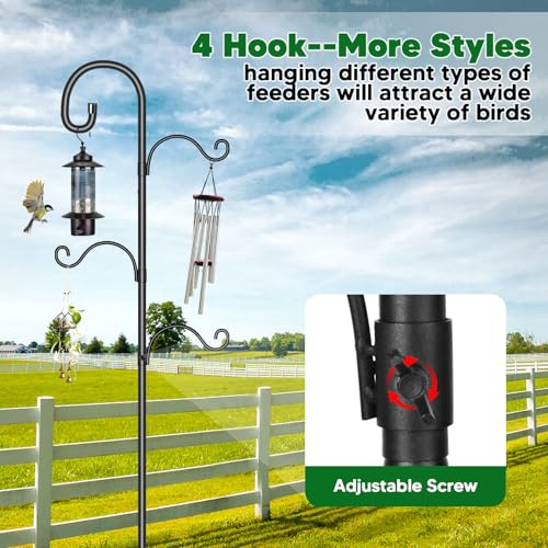 Multi-Use Hooks with 3 Adjustable Arms:Includes 4 shepherds crook garden hooks, 3 of which can be repositioned to suit different items. Hang baskets, bird feeders, lanterns or wind chimes just the way you like