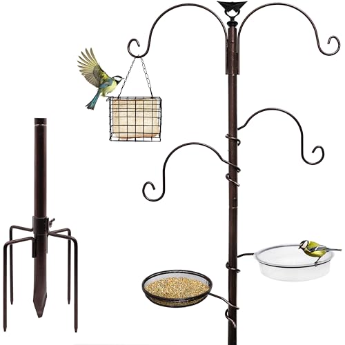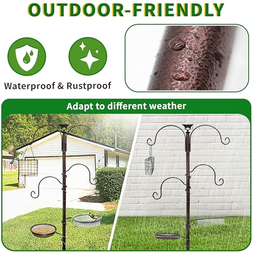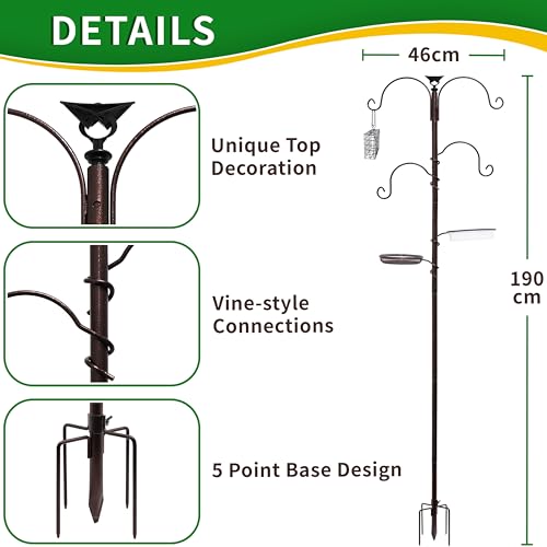 【QUALITY AND DURABILITY】Made with high-quality materials and finished with an antique bronze metal paint, this bird feeders hanging station is rust-proof and waterproof, making it ideal for outdoor use. Standing at 190cm, this bird feeder pole provides an optimal height for bird feeding while ensuring long-lasting durability.