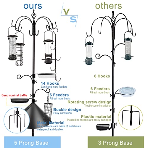 Spectacular Bird Feeding Station Kit with Squirrel Baffle: Our W hook bird feeding stations kit includes fruit hooks and 3 metal tube bird feeders can hook fruit or tube bird feeder,plant,lights etc.Wild birds will naturally be attracted to the multi-hook bird feeder and water station and you can comfortably enjoy the birds feeding off the station from the comfort of your home! The rustic and vintage look of bird feeder poles will enhance your garden landscape