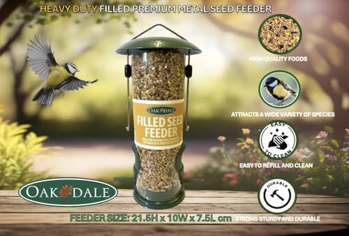 Oakdale Premium Filled Seed Bird Feeder, Heavy Duty Metal & Weatherproof, Ready-to-Hang, Attracts Finches & Sparrows