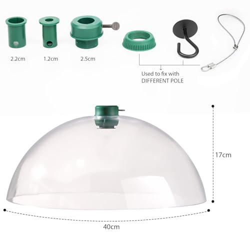 DIMENSIONS/SIZE: Approx H 17cm x W 40cm x D 40cm (approx.), Color: Clear plastic dome (feeder pole not included)